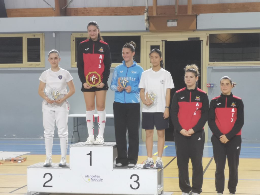 • M13 Dame (/16) : Agathe BLANRUE 2eme, Vera PECCHIA ARBELAEZ 6eme, Lucie GAIERO 8eme, Mathilde CAMPONOVO 9eme, Adèle PELLER ANDRE 11eme